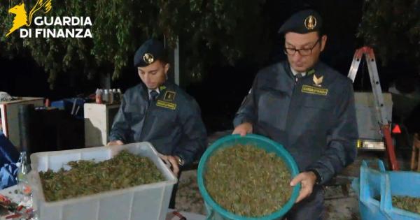 Napoli (ITALPRESS) - La Guardia di finanza di Napoli ha sequestrato, a Lettere, 142 kg. di infiorescenze di cannabis già pronte per il confezionamento e la vendita, oltre a 5.750 piante in essicazione e 390 piante in avanzato stato di vegetazione e maturazione, per un peso complessivo di oltre 1.000 kg. DEnunciata una persona per per produzione, traffico e detenzione illeciti di sostanze stupefacenti. In particolare, i finanzieri della Compagnia Castellammare di Stabia hanno individuato, sui Monti Lattari, un capannone strutturato su due livelli, convertito in laboratorio per la lavorazione di cannabis. Il manufatto era dotato di una rete di fili di ferro al soffitto, essiccatoi e macchinari di separazione. All'interno della serra sono state rinvenute le piante in vegetazione, incastonate tra fili di nylon per sostenerne la crescita e alimentate con un percorso di irrigazione rudimentale. Dai riscontri delle Fiamme Gialle è emerso che la produzione era destinata al consumo di droghe per uso personale atteso che, nel prodotto finito, risultavano già separate le infiorescenze dalla parte legnosa, pronte per il confezionamento in dosi. - Foto: ufficio stampa Guardia di Finanza - (ITALPRESS). pc/com 27-Ott-25 08:27