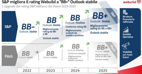 MILANO (ITALPRESS) - S&P Global Ratings ha alzato il rating di Webuild a BB+ con outlook stabile, rispetto al precedente BB. Si tratta del secondo upgrade ottenuto da S&P nel corso del Piano Industriale 2023-2025, a conferma della solidità del modello industriale, della visione strategica del Gruppo e delle performance economiche finanziarie anche in contesti macroeconomici complessi. Webuild si prepara ora ad avviare un nuovo piano industriale con un rating a un passo dall'investment grade. Secondo S&P, l'upgrade riflette il solido portafoglio ordini, la gestione disciplinata dei contratti e la posizione di leadership nei principali mercati chiave per il Gruppo, fattori che hanno determinato una robusta crescita e il rafforzamento della struttura finanziaria del Gruppo. S&P sottolinea la leadership di Webuild nei mercati chiave a basso rischio, che oggi rappresentano circa il 90% del backlog e dei ricavi, rispetto al 59% del 2018. Questa evoluzione è frutto di una strategia mirata ai Paesi sviluppati, con acquisizioni e investimenti che hanno aumentato il peso dell'Italia e dell'Australia. L'agenzia evidenzia inoltre che il profilo di business è supportato da una maggiore diversificazione e da capacità ingegneristiche avanzate, superiori rispetto a quelle dei concorrenti con rating simile. Guardando al futuro, S&P prevede che Webuild continuerà a registrare una solida performance operativa nei prossimi anni, sostenuta da un portafoglio ordini construction di 50 miliardi di euro che garantisce forte visibilità sui ricavi. A ciò si aggiungono termini contrattuali più favorevoli, grazie anche alla crescente adozione di clausole di pass-through dei costi, e l'impatto positivo del programma di cost-efficiency. Questi fattori, combinati con una costante attenzione alla gestione del capitale circolante, dovrebbero secondo l'agenzia assicurare flussi di cassa robusti e una redditività in ulteriore crescita nel tempo. L'agenzia di rating segnala, infine, che, data la finalizzazione in corso dei processi approvativi del progetto per il Ponte sullo Stretto di Messina, nessun impatto economico-finanziario è stato riflesso nelle attuali stime, rappresentandolo di fatto come un upside per il rating. Progetti di questo tipo, secondo S&P, mostrano le forti capacità ingegneristiche e gestionali del Gruppo, specializzato nel realizzare grandi opere infrastrutturali complesse anche di fronte a sfide tecniche, geologiche e ingegneristiche. - Foto ufficio stampa Webuild - (ITALPRESS). sat/com 03-Nov-25 19:15