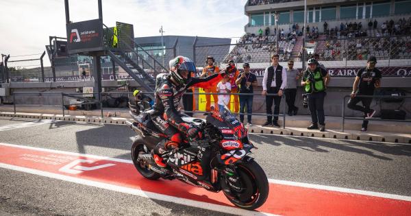 VALENCIA (SPAGNA) (ITALPRESS) - Marco Bezzecchi (Aprilia) conquista la pole position nel Gran Premio di Valencia, ventiduesimo e ultimo appuntamento del Mondiale di MotoGP. Il pilota riminese ha firmato il miglior tempo in 1'28"809, precedendo di appena 26 millesimi lo spagnolo Alex Marquez (Ducati Gresini) e di 44 un altro italiano, Fabio Di Giannantonio (Ducati VR46). Partirà solo dalla sedicesima casella Pecco Bagnaia (Ducati), fermato da un problema tecnico in Q1. - foto Ipa Agency - (ITALPRESS). mec/gm/red 15-Nov-25 11:41