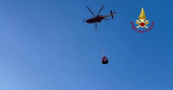 Recuperato con elicottero dai Vigili del fuoco cavallo bloccato nel fango