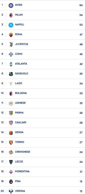SERIE A - 26^ GIORNATA