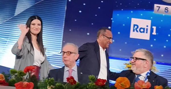 Sanremo, Carlo Conti accoglie Laura Pausini: le immagini