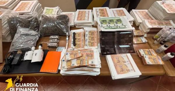 NAPOLI (ITALPRESS) - I militari del Comando Provinciale della Guardia di finanza di Napoli, a Torre Annunziata, hanno individuato un immobile adibito a stamperia clandestina, dove sono state rinvenute e sequestrate banconote false per un valore di oltre 2.8 milioni di euro, ologrammi per tagli da 50 e 100 euro, cliché, telai, un pc con memorie di massa, stampanti, risme di carta filigranata e altro materiale di consumo. Il proprietario del locale è stato arrestato. I "baschi verdi" del Gruppo Torre Annunziata hanno scoperto, alla periferia del comune, una vera e propria stamperia di banconote, nella quale erano già pronti per essere immessi sul mercato oltre 2.800.000 di euro falsi, prevalentemente in tagli da 50 euro e, in minima parte, da 100 euro. Insieme alle banconote sono stati sequestrati oltre 12.000 ologrammi contraffatti per riprodurre biglietti da 50 e 100 euro. Il "laboratorio" era attrezzato con numerose stampanti ink-jet e laser, comandate da un pc su cui era attivo un programma professionale di grafica, strumenti di taglio e punzonatura, cliché, materiali di consumo vari (inchiostri speciali, vernici, toner, polveri) e tre telai per la finitura manuale delle banconote. In particolare, le banconote subiscono una procedura di invecchiamento, tali da renderle più "vissute" e quindi maggiormente realistiche. Gli investigatori evidenziano che le banconote in euro sono dotate di caratteristiche di sicurezza che rendono difficile la falsificazione (quali elementi in rilievo, filigrana, filo di sicurezza, numero in trasparenza, ologramma e striscia brillante) che, in questo caso, i responsabili hanno tentato di eludere. Le banconote contraffatte qualora immesse sul mercato, secondo le attuali quotazioni, avrebbero potuto fruttare, secondo una stima degli inquirenti, oltre 280 mila euro. Nell'immobile, abilmente occultati, sono stati inoltre rinvenuti anche 2,2 chili di sostanze stupefacenti, in larga parte marijuana e taluni panetti di hashish, il cui sequestro da parte delle fiamme gialle ha evitato che finissero nelle piazze locali di spaccio. Il responsabile, cittadino italiano, è stato arrestato. Il gip ha convalidato il provvedimento, disponendo la custodia cautelare in carcere. - Foto ufficio stampa Guardia di Finanza - (ITALPRESS). vbo/com 18-Mar-26 08:54
