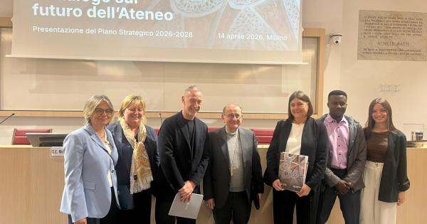 MILANO (ITALPRESS) - Non un documento, ma un processo condiviso iniziato nove mesi fa, caratterizzato da 34 workshop tematici, cui hanno aderito 665 membri della comunità, 1.711 rispondenti alla survey online e 54 proposte progettuali presentate attraverso la call for ideas. E' questo il percorso alla base del Piano Strategico 2026-2028 dell'Università Cattolica del Sacro Cuore di Milano, presentato dal Rettore Elena Beccalli. "Avviamo nuove linee progettuali che vanno dalla Scuola di integrazione dei saperi al lifelong learning in collaborazione con una primaria piattaforma digitale internazionale", spiega Beccalli. "Anche il metodo -aggiunge - è originale e distintivo: non è usuale per un Piano Strategico impostare un metodo così partecipativo, fondato sulla collaborazione attiva di tutta la comunità universitaria, sulla co-progettazione e sull'ascolto dei principali interlocutori e scrivere insieme il futuro dell'Ateneo per i prossimi tre anni". Il piano strategico "non è un adempimento burocratico. È una iniziativa, cioè dichiara la responsabilità e la determinazione di far fronte e di orientare la vita dell'università". Illustrando la vision, il Rettore individua i "tre indirizzi che guidano la nostra missione istituzionale: valorizzare il profilo di ateneo cattolico non profit; favorire una piena integrazione tra la dimensione di comunità educante e quella di research university; costruire un luogo di esperienza del sapere e non solo di trasmissione del sapere. Ciò significa, per esempio, attivare proposte pedagogiche innovative come il service learning, fondato sul coinvolgimento della comunità studentesca in percorsi di cittadinanza attiva e partecipazione sociale, o come il peer mentorship, per un aiuto tra pari anche su contenuti, conoscenze e competenze". Il Piano Strategico 2026-2028 è articolato in cinque pilastri tra loro collegati. "Il primo pilastro - afferma Beccalli - riguarda l'istituzione di una scuola di integrazione dei saperi, in grado di potenziare l'interdisciplinarità dell'Ateneo nell'affrontare le grandi questioni del nostro tempo a partire da una prospettiva trasversale, evitando il rischio di una parcellizzazione delle competenze". Il secondo pilastro è rappresentato dalla valorizzazione della ricerca, delle ricercatrici e dei ricercatori, "con l'obiettivo di rendere ancor più incisivo il profilo di research university. Si intende, cioè, promuovere un ambiente di ricerca favorevole in grado di attrarre e sostenere le giovani ricercatrici e i giovani ricercatori attraverso incentivi e premialità". Il terzo pilastro poggia su "un'offerta formativa di qualità che valorizzi l'esperienza del sapere negli spazi fisici e digitali, per un pieno sviluppo della comunità educante. Ciò anche attraverso un rinnovamento dei contenuti e delle metodologie didattiche con particolare attenzione agli strumenti dell'intelligenza artificiale e lo sviluppo di percorsi in collaborazione con la piattaforma digitale internazionale FutureLearn per una formazione che abbracci l'intero arco della vita professionale". Il quarto pilastro attiene all'internazionalizzazione e si muove lungo due direttrici. "Da un lato, l'ampliamento della dimensione globale attraverso accreditamenti, attenzione ai ranking e a ulteriori dual degree in aggiunta ai 112 già attivi; dall'altro, un orientamento più identitario ispirato alla solidarietà, volto a proseguire nella realizzazione del Piano Africa". Infine, il quinto pilastro è dedicato alle attività di fundraising "facendo leva su principi identitari e istituzionali, guidati dall'idea del dono come reciprocità. La finalità, pertanto, va oltre la raccolta di risorse e abbraccia il rafforzamento delle relazioni con gli alunni e gli interlocutori esterni per sostenere progettualità strategiche e garantire l'accesso ai nostri corsi a giovani meritevoli ma privi di mezzi". Secondo il Presidente dell'Istituto Toniolo, l'Arcivescovo di Milano Mario Delpini, "con il piano strategico l'Università Cattolica si ripropone come espressione di una presenza cattolica che pratica l'autonomia della ricerca e insieme esprime con gratitudine l'appartenenza alla Chiesa cattolica italiana e alla comunità internazionale". A raccontare in che modo l'università diventa luogo di esperienza del sapere e stato il direttore artistico di Radio Deejay Linus, che davanti alla platea di docenti, personale amministrativo e studentesse e studenti, si è confrontato con tre esponenti della comunità universitaria: Margherita Lanz, docente di Metodologia della ricerca psicologica applicata, Jolie Casalini, studentessa della Facoltà di Scienze politiche e sociali, Maddalena Baitieri, Ufficio ricerca. -foto f50/Italpress- (ITALPRESS). mgg/com 14-Apr-26 19:00