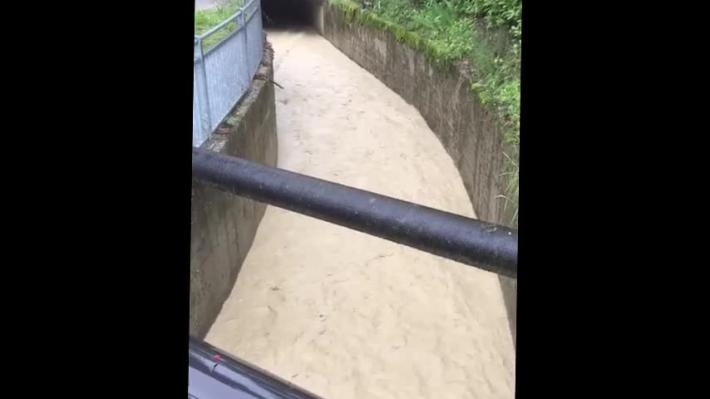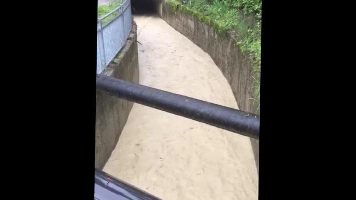 Il giorno dopo l'esondazione è ancora sotto stretto monitoraggio il rio Scalia a Langhirano. Nel video si vede la piena ancor ain corso.