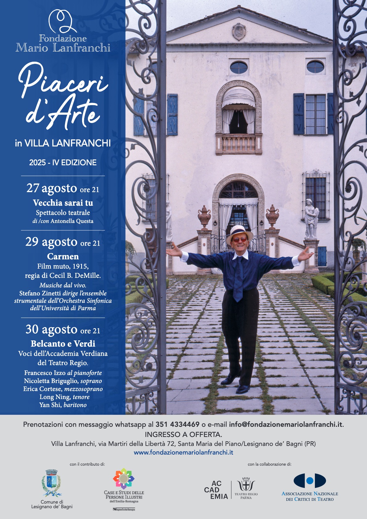 Ingresso a offerta. Prenotazioni Whatsapp al numero 351-4334469 o email info@fondazionemariolanfranchi.it.