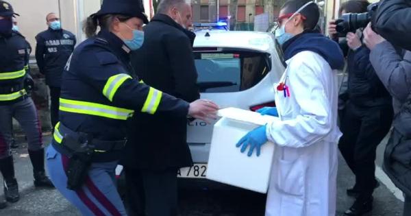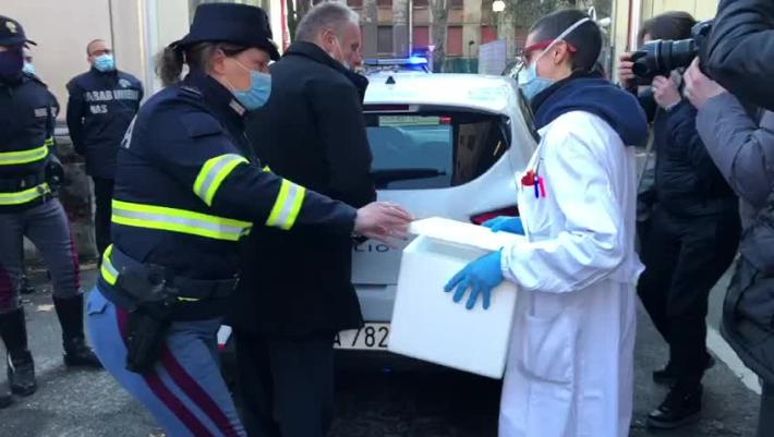 Ore 9.50: le prime dosi di vaccino arrivano al Maggiore scortate dalla Stradale - Video
