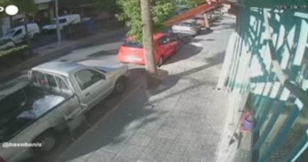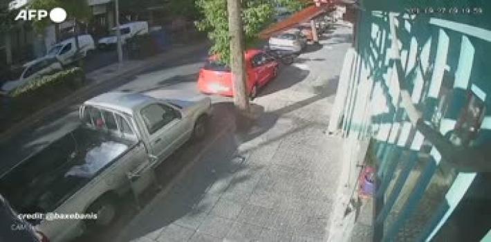 Nelle immagini di una telecamera di sicurezza a Heraklion, alcuni cittadini escono in strada