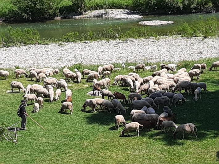 Un lungo scampanellio sul LungoParma: sono le pecore al pascolo nel greto. Il video inviato da un lettore e, qui sotto, l'immagine scattta da una lettrice.