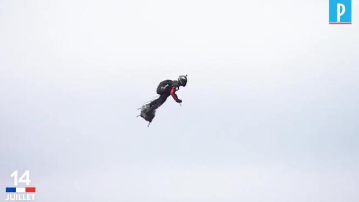 Il campione del mondo di jet-ski francese Franky Zapata ha presentato uno spettacolo futuristico domenica alla parata militare del 14 luglio a Parigi volando a diverse decine di metri da terra sul suo "Flyboard", un propulsore della sua invenzione, sopra gli Champs-Elysées. (video tratto dal canale YouTube di Le Parisien)