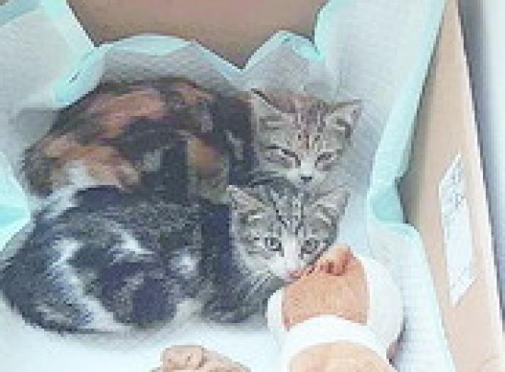 Un maschietto e 2 femminucce di poco più di un mese, ora accuditi dalla volontaria che li ha salvati dopo che la loro mamma è stata investita, saranno adottabili tra qualche settimana.