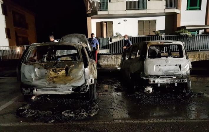 L'incendio a una delle auto è divampato intorno alle 3, e avrebbe presto coinvolto anche la vettura parcheggiata a fianco. Sulle cause sono in corso accertamenti da parte di carabinieri e vigili del fuoco. Non si esclude l'ipotesi dolosa.