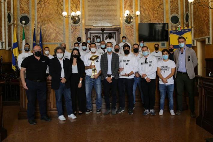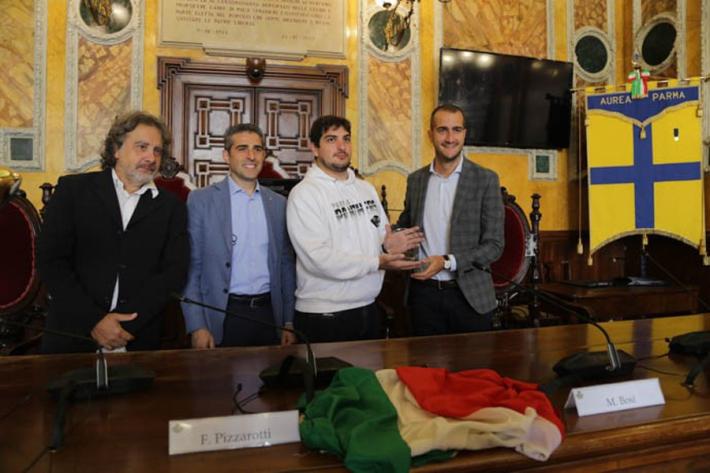 Il sindaco ha accolto gli atleti e lo staff: "Oggi celebriamo il vostro successo e il ringraziamento a voi è di tutta la città. Festeggiamo un risultato sportivo importantissimo raggiunto dopo un anno davvero difficile grazie alla vostra preparazione e dedizione. Ancora complimenti". "Un risultato che rimarrà nella storia e arrivato grazie al vostro lavoro. Siete un tassello importante per i ragazzi della nostra città che si avvicinano e fanno sport. Un ringraziamento anche al vostro presidente sempre in campo con voi e pronto a sostenervi anche nelle difficoltà grazie anche alla sua passione per questo sport. Un anno estremamente positivo per lo sport di Parma e voi ne fate parte" ha dichiarato il vicesindaco Bosi.