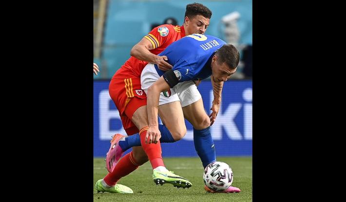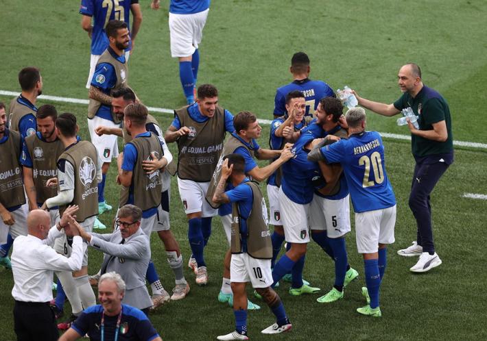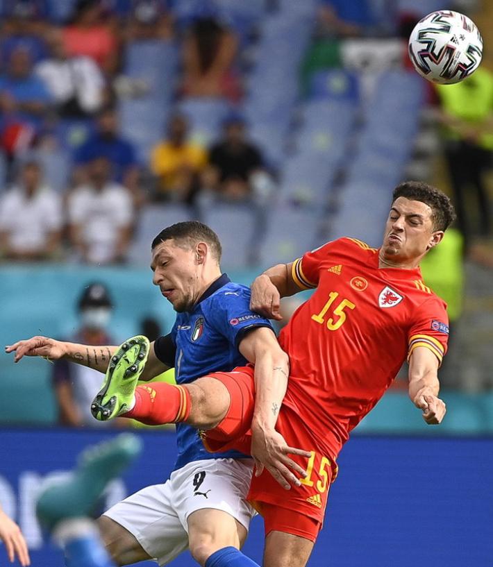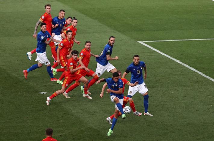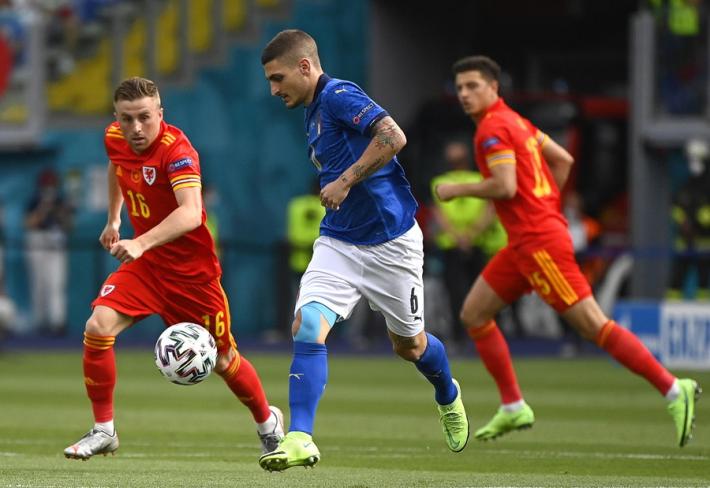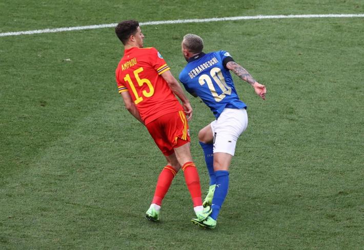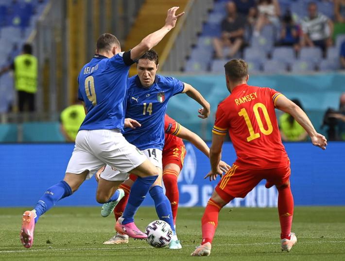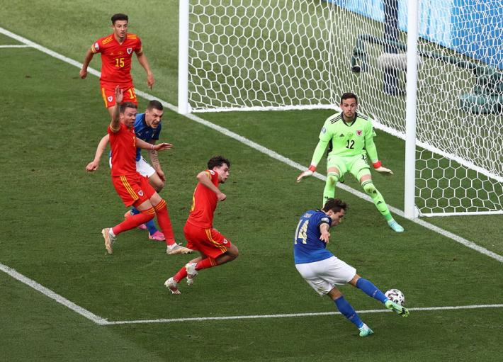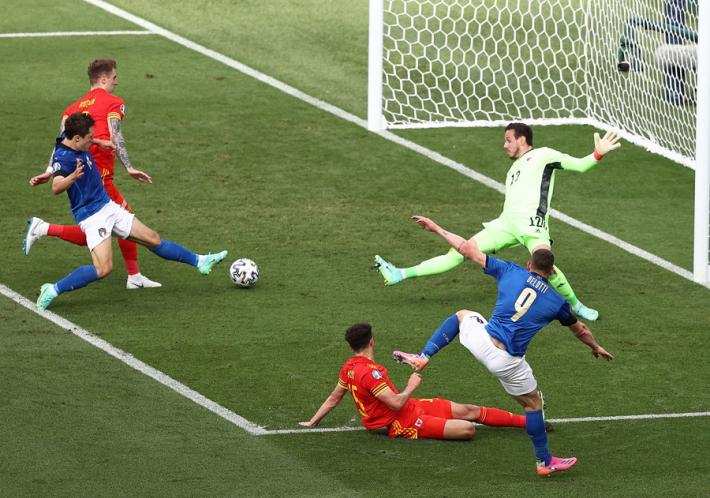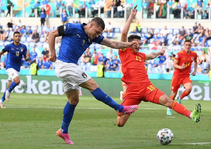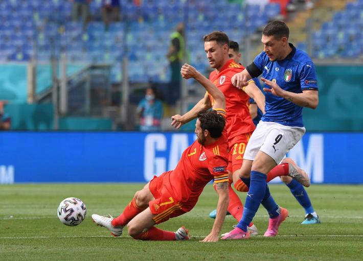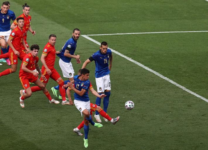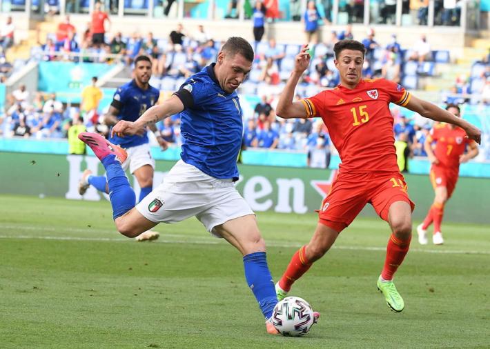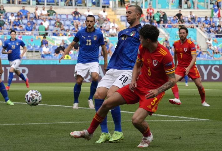 L’Italia di Mancini si prende tutto: la qualificazione da prima del girone A, l’ottavo di finale a Wembley contro la seconda del gruppo C e il record di 30 risultati utili consecutivi di Vittorio Pozzo. All’Olimpico un gol di Pessina infligge la prima sconfitta a un Galles in dieci uomini per più di mezz'ora ma qualificato ugualmente in virtù della miglior differenza reti rispetto alla Turchia. Il ct azzurro ne cambia otto rispetto al match contro la Svizzera, con la novità rappresentata da Verratti che torna dal 1' dopo l’infortunio che l'ha costretto a saltare le prime due gare. La partita segue un copione simile alla gara contro la Turchia. La prima parte di gara è bloccata, gli azzurri (con il lutto al braccio per omaggiare Boniperti) faticano a trovare spazi. La prima occasione è per Chiesa al 30'. Lo juventino controlla di petto e incrocia sul secondo palo ma è decisiva la deviazione di Ampadu sulla linea. La rete dell’1-0 è rimandata al 39'. Punizione laterale di Verratti e Pessina tocca col destro quel che basta per superare Ward. E’ sua la rete che decide la partita al duplice fischio dell’arbitro: Belotti lotta su ogni pallone ma non trova la via del gol mentre Bernardeschi è poco più di una comparsa.