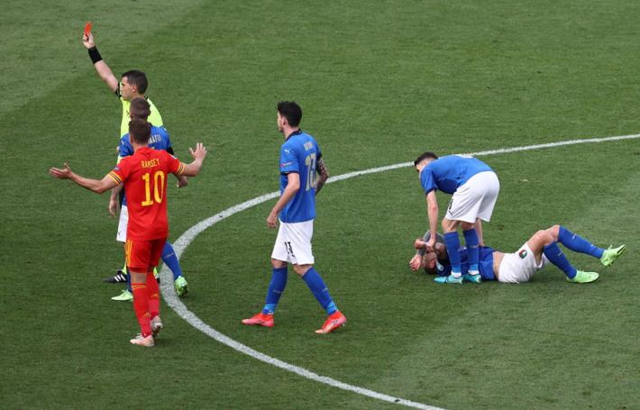 Almeno nei primi 45' perchè nella ripresa l’esterno della Juventus si mette subito in luce, al 53', con un tiro da calcio di punizione che si stampa sul palo. Poco dopo, il Galles sfiora il pareggio: Ramsey manda a vuoto Acerbi (subentrato a Bonucci) ma al momento del tiro è rimontato da Jorginho. E’ l’ultimo lampo prima della svolta del match: Ampadu entra durissimo su Bernardeschi e riceve il rosso diretto. Praterie in più per l’Italia che non chiude la partita e al 75' rischia di subire gol con l’avversario più atteso: Gareth Bale che da solo dopo una sponda di Moore in area scarica alto un tiro col mancino. Nel finale c'è spazio anche per Raspadori e Castrovilli ma soprattutto per Sirigu in porta con Meret che è l’unico azzurro dei ventisei a non aver debuttato.