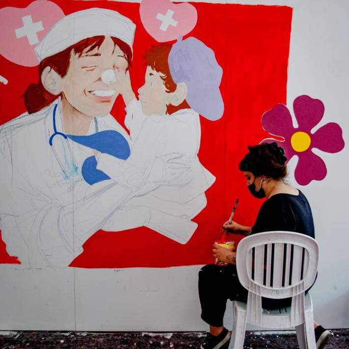 «Un modo per celebrare il fondamentale lavoro svolto dal personale sanitario, l’impegno e il senso di responsabilità dei cittadini, con uno sguardo positivo sul nostro presente e futuro», ha detto in occasione dell’inaugurazione del murale, Claudio Bertolani, presidente dell’impresa sociale 'Base Progetto Giovanì, ente ideatore di 'Made Magazzino di Esperienzè.