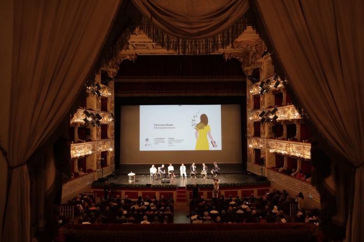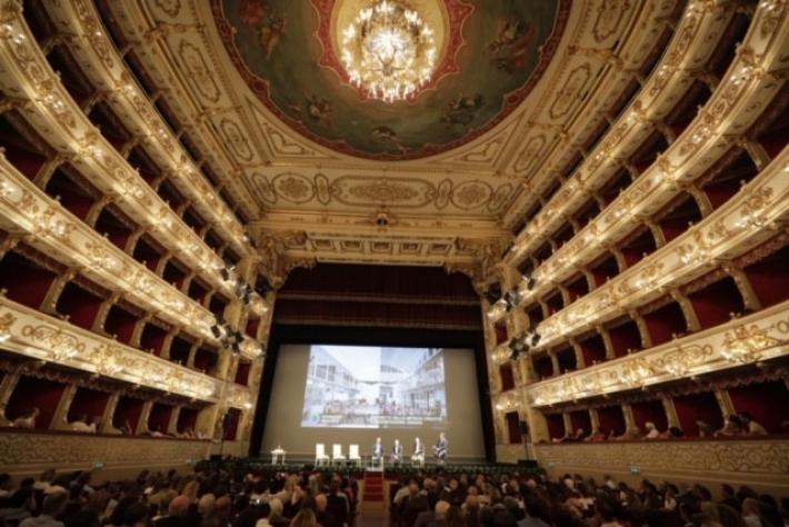 Mostre, incontri, eventi: Anteprima PARMA 2020: la presentazione del programma fa il tutto esaurito al teatro Regio. Platea gremita di autorità e operatori culturali. Tra i relatori, l’illustratore Francesco Ciccolella, ideatore della ragazza in giallo simbolo di PARMA 2020.
