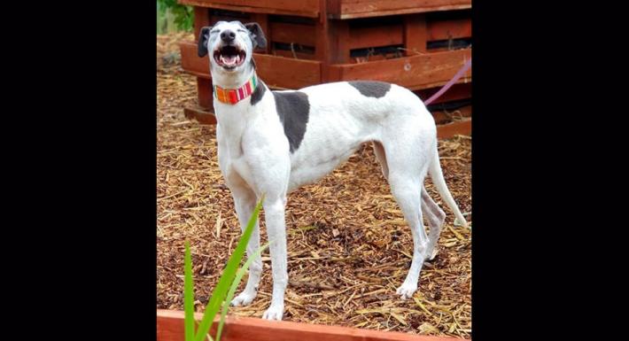 Meravigliosa femmina di Greyhound di 4 anni. Allegra, affettuosa e materna con i bimbi. In Italia l’8 maggio.