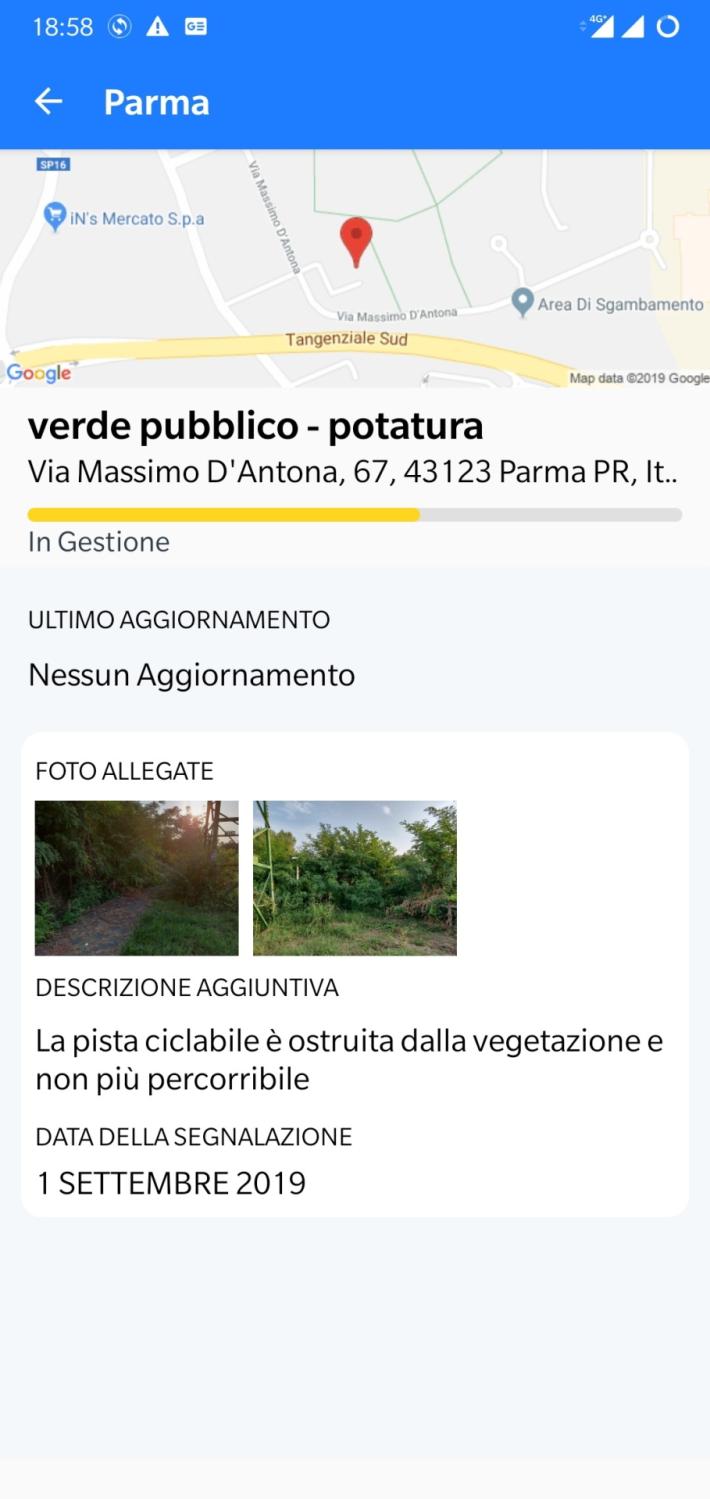 La pista ciclabile di via Massimo D'Antona, è diventata di fatto inutilizzabile perché invasa da mesi dalla vegetazione.