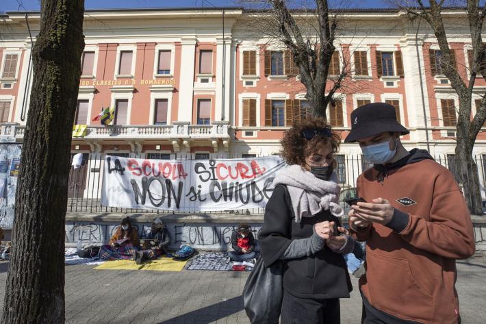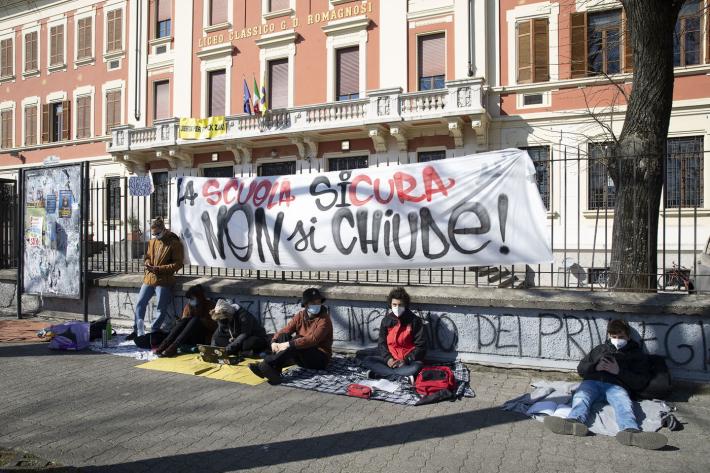 E' andata in scena questa mattina davanti al Romagnosi la protesa degli studenti in didattica a distanza. I ragazzi hanno chiesto la riapertura delle scuole in sicurezza.
