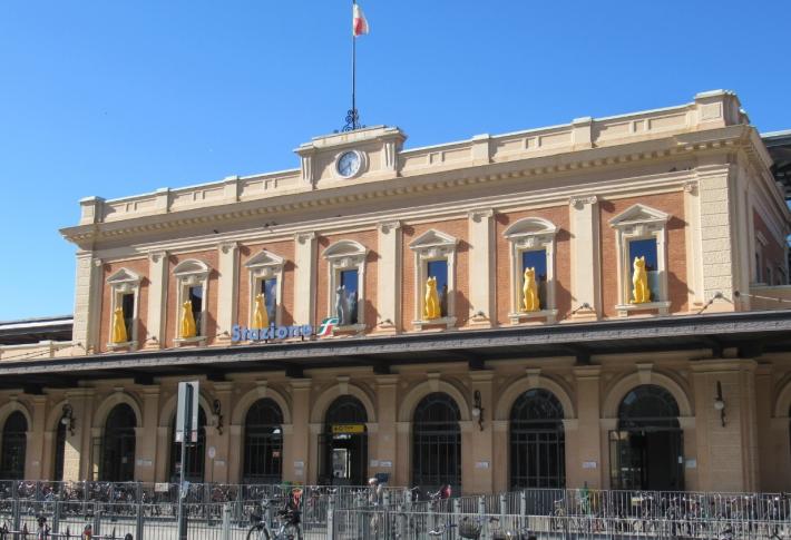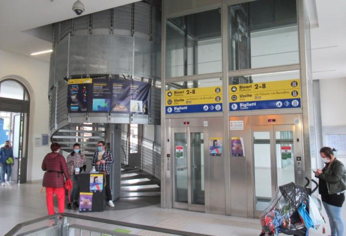 All’esterno dell’edificio, sui davanzali, si trovano i giganteschi lupi (gialli, più uno solo grigio) del movimento artistico «Cracking Art»: resteranno in stazione fino al 18 luglio. Il piano dell’esposizione è raggiungibile con scala a chiocciola e con ascensore dal piano da sempre utilizzabile per entrare in stazione.