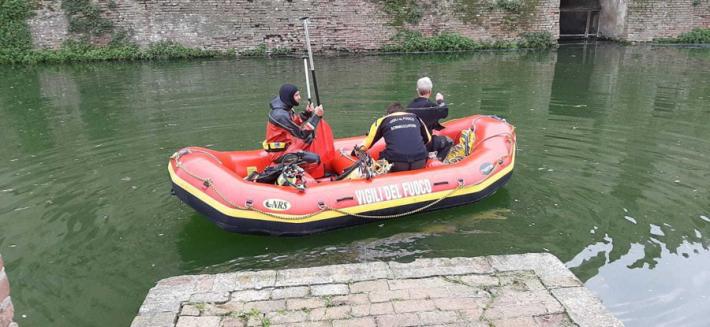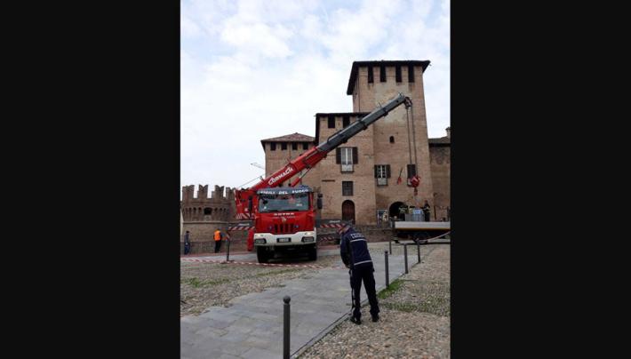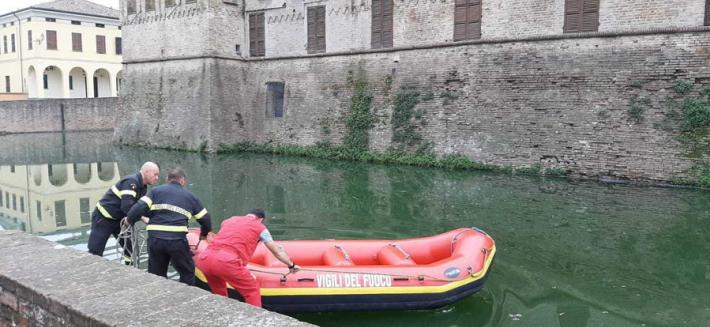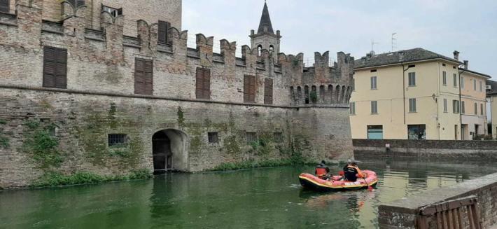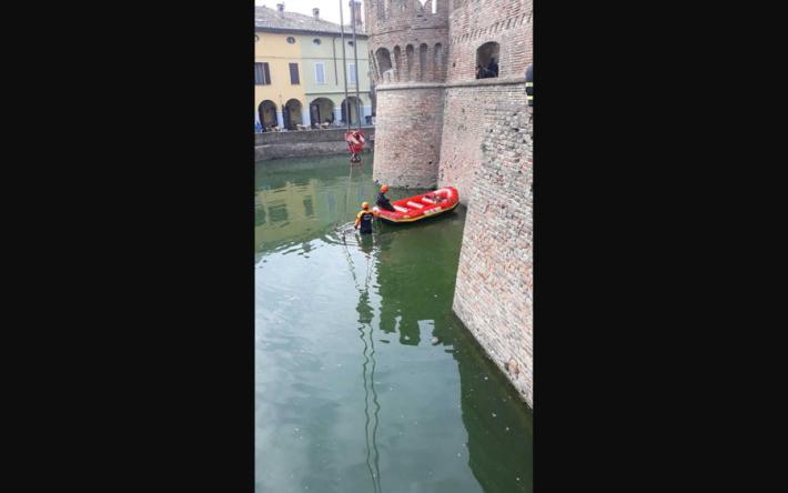 E' iniziato stamattina, con l'arrivo da Bologna i sommozzatori dei vigili del fuoco il tentativo di recupero degli ultimi frammenti del merlo della Rocca Sanvitale ancora rimasti sul fondo del fossato che circonda il castello. Il manufatto era caduto in acqua lo scorso 24 giugno, travolto dal crollo del bagolaro cresciuto nel giardino pensile, e la parte rimasta intatta era stata "ripescata", non senza difficoltà, all'inizio di agosto. Per ricostruire la decorazione e rimetterla al suo posto, però, mancano ancora diversi mattoni e oggi si tenterà di recuperarli tutti e procedere alla risistemazione della merlatura.