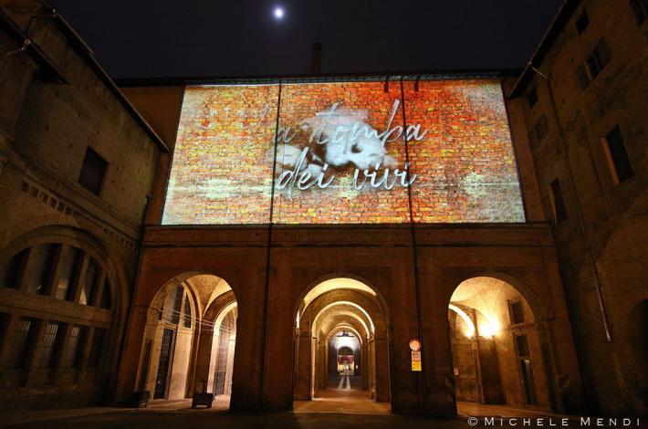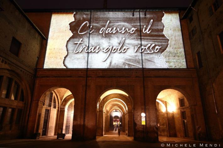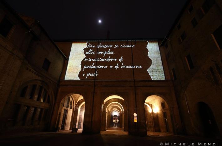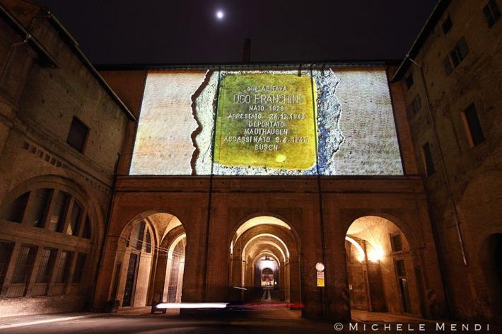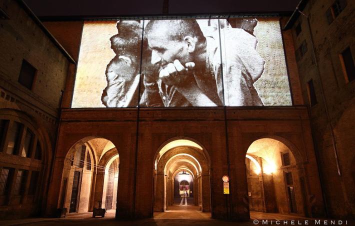 In occasione della Giornata della memoria 2021 sono state proiettate sul palazzo della Pilotta queste immagini (foto di Michele Mendi"
