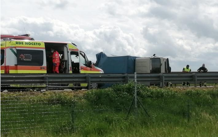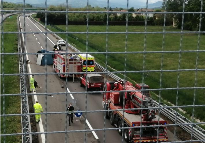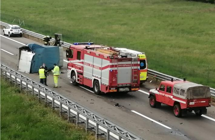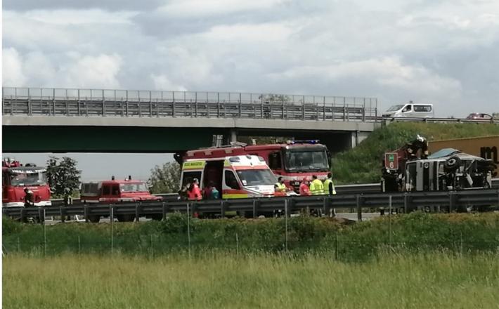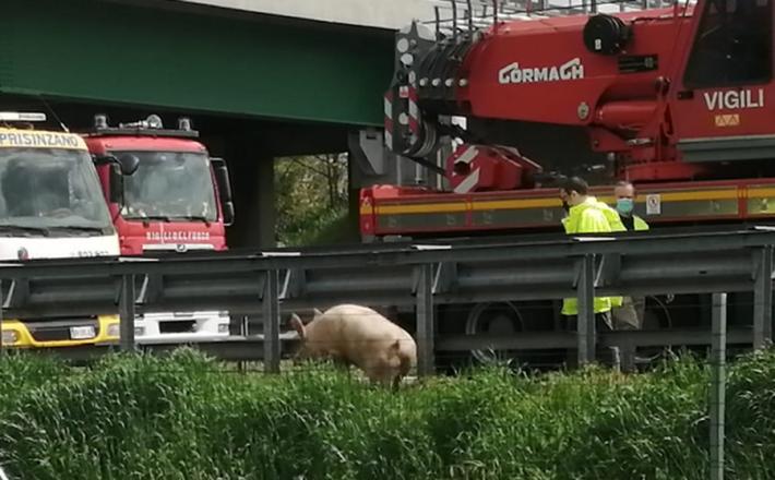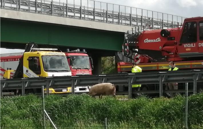 Grave incidente in A15: si ribalta un camion carico di maiali e un furgone gli finisce contro- Foto