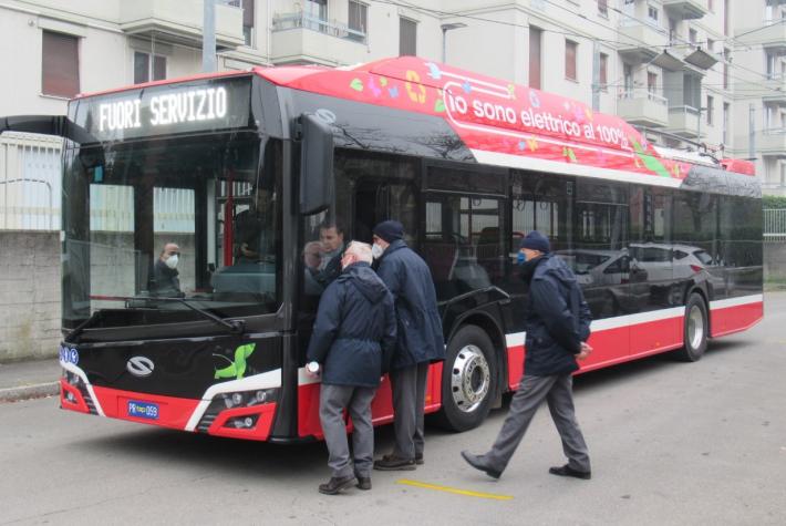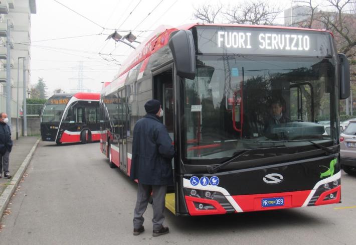 «Sorpreso» al capolinea del «5» in via Orazio un nuovo filobus 100% elettrico in prova, destinato ad essere utilizzato sulla linea «1». Nell’attesa, prende «conoscenza» delle strade di Parma e si fa qualche giro panoramico in città.