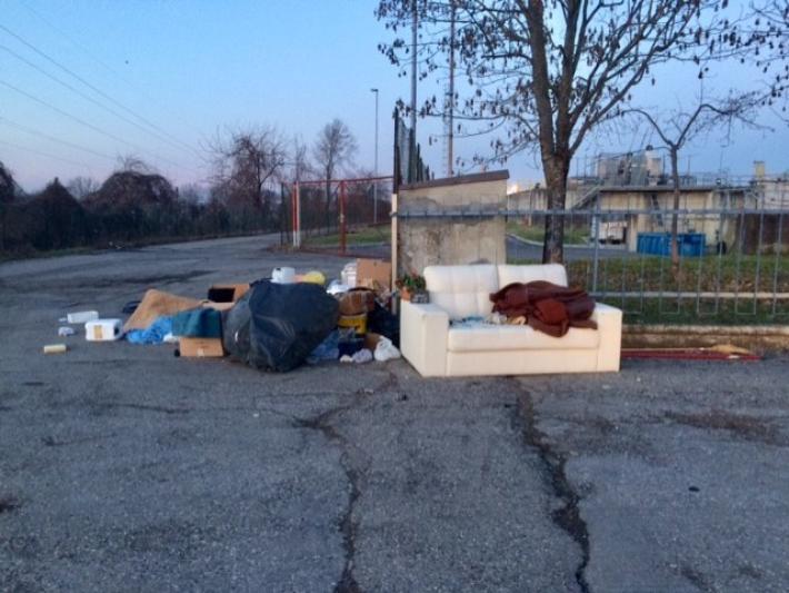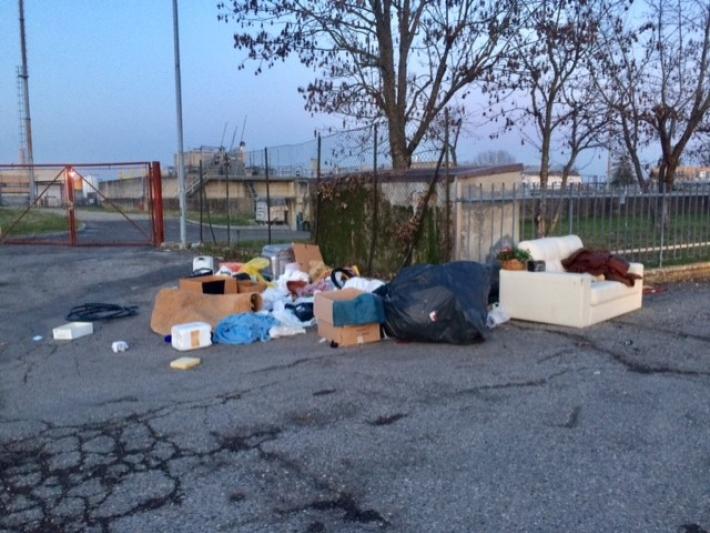 Un grosso ammasso di rifiuti è stato abbandonato davanti al depuratore della zona Naviglio alto, la strada che porta all'Ikea .