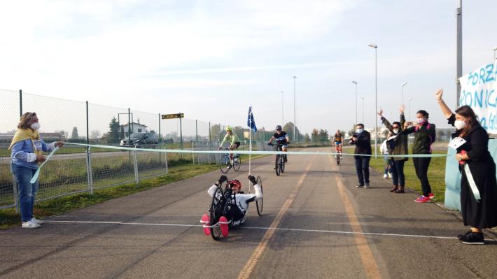 “Ad un certo punto speravo che avessimo sbagliato a contare i km ma ce l’abbiamo fatta tutti insieme – commenta Veronica Frosi alla fine -. Ringrazio tutte le persone che mi hanno sostenuto. Vedere e sentire chi pedalava dietro sacrificandosi per mantenere il mio ritmo al fine di spingermi idealmente in avanti oppure le persone che camminavano a bordo pista applaudendomi è stato straordinario. Il momento di maggior crisi sono stati i 35 km, mi facevano male molto le spalle e la testa avrebbe voluto cedere. Non ho mollato perché al mio fianco avevo a mio padre e il mio preparatore Enrico Oliviero dello Sport Center Parma che mi hanno continuato a spronare e dettare i tempi ma soprattutto non volevo deludere Alex, ad ogni km l’ho pensato e mi ripetevo le sue parole”.