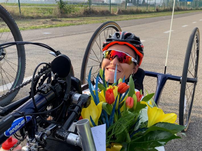La 19enne handbiker parmigiana, è tornata in pista dopo 8 mesi di stop e sole 4 settimane di allenamento; con grande caparbietà e spirito di sacrificio è riuscita a terminare la maratona con la sua handbike battendo il suo miglior personale con il tempo di 3:50:25.