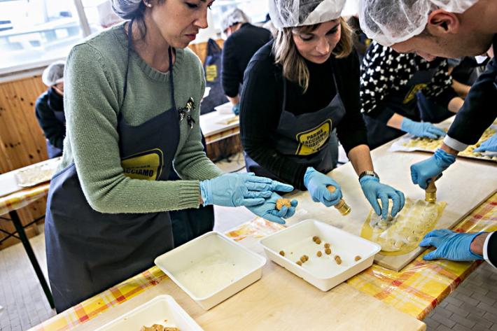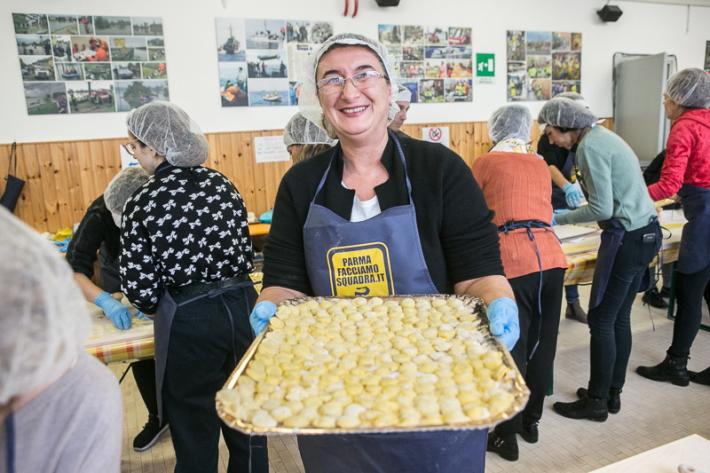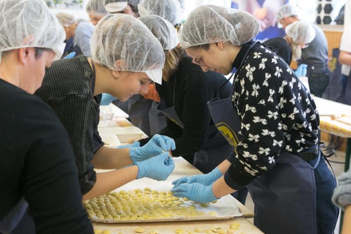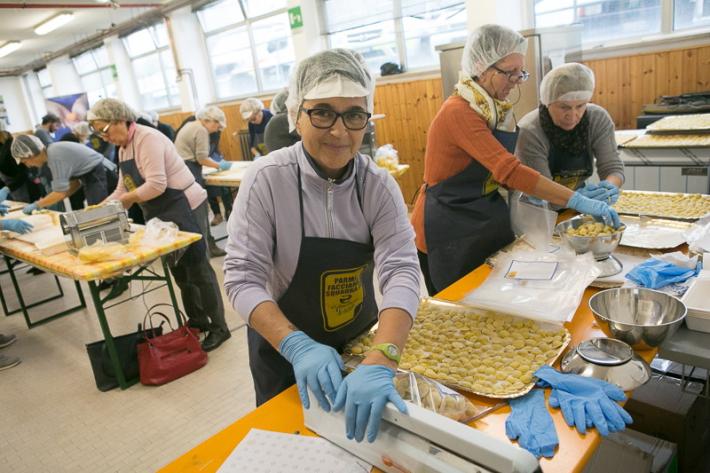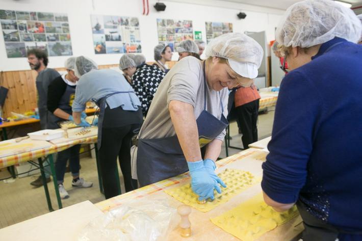 E' in pieno svolgimento la maxi staffetta per realizzare gli "anolini solidali". Guarda nella fotogallery i volontari al lavoro.