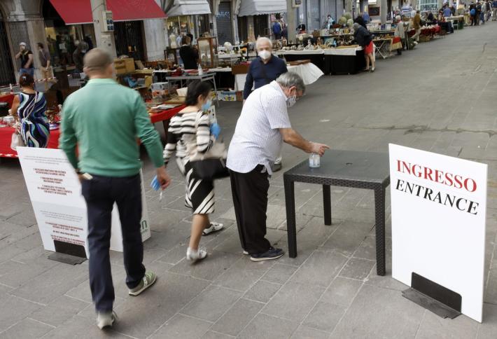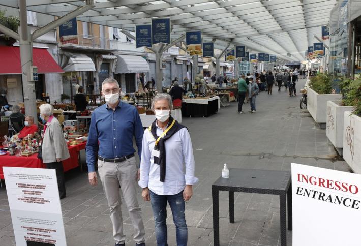 Mascherine obbligatorie per tutti e grande attenzione alle misure di precauzione, sia agli ingressi nel perimetro sotto la vela che fra i banchi (opportunamente distanziati) dove gli espositori hanno messo a disposizione dei clienti guanti e gel igienizzante.