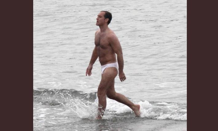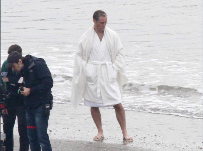 E' per la nuova serie «The New Pope» di Paolo Sorrentino per Sky Atlantic e HBO che Jude Law, 46 anni, esce dal mare di Venezia indossando un costume bianco. Le immagini dell'attore stanno facendo il giro del web e dei social, facendo impazzire i fans.