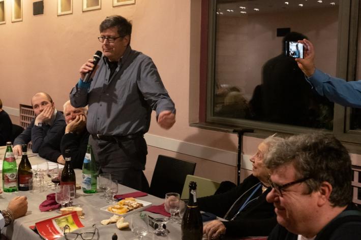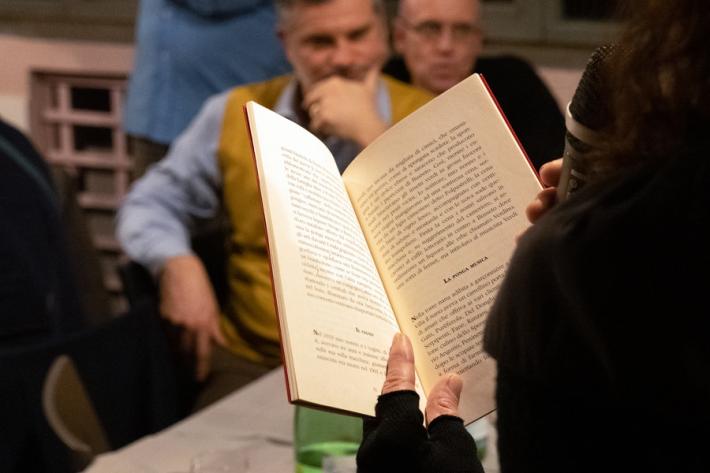 Un altro bel sold out per Mangia come scrivi, storica rassegna diretta e condotta dal giornalista Gianluigi Negri, andata in scena all’Hostaria Tre Ville di Parma in “limited edition”. La cena "Tacete, croce e delizia" ha avuto come protagonisti lo scrittore surrealista Antonio Tacete (al suo decimo libro con “La ponga musica”), i critici Isa Guastalla e Danilo Bianchi, l'editore Antonio Battei, gli attori Daniela Stecconi e Giampaolo Bocelli. Presente, come guest star, anche l’attore Alberto Petrolini. Foto di Fabrizio Petrolini