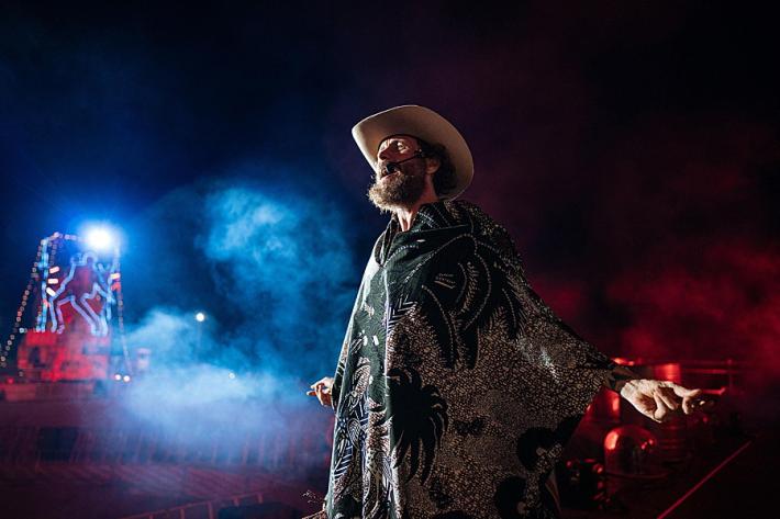 Inizia la festa in riva al mare (costata un milione e mezzo di euro per ognuna delle 17 date in programma), e tutte le polemiche ambientaliste della vigilia vengono spazzate via dalla voglia di divertire, di divertirsi. E allora con Lorenzo alla consolle è carnevale di Rio, con tanto di trenini sotto palco, è un tuffo negli anni Sessanta con Sapore di mare, è un’incursione negli anni Ottanta con Pump up the Jam. C'è spazio anche per un omaggio ai Queen. E’ un remix continuo, un filo unico che va da La mia moto a Pensiero Positivo, passando per L’ombelico del mondo e Il più grande spettacolo dopo il Big Bang, fino alle più recenti, L’estate addosso e Oh, vita! «Non c'è una scaletta fissa, ogni giornata sarà diversa - avverte Jova -, saliamo sul palco attacchiamo gli strumenti, accendiamo la consolle e partiamo. Non ci fermiamo fino a mezzanotte». Non c'è un inizio, non c'è una fine. C'è tutta la storia del ragazzo fortunato che corre sul palco su cui troneggiano una sirena da un lato e alte palme sull'altro sfoggiando un gonnellone etnico e una giacca variopinta, e anche la storia di quei 45 mila «tipi da spiaggia" che ballano in costume con la pelle scottata dal sole senza sosta e cantano abbracciati come fosse un rito liberatorio. E anche i telefoni rimangono in tasca. Spuntano solo per il momento più romantico quello di La mia ragazza magica. Samuel è l'artista che sale con lui sul palco, insieme nel 2017 hanno collaborato per tre brani.