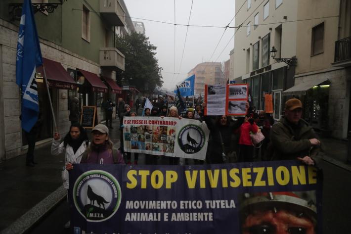 Circa 300 persone hanno sfilato per le strade del centro per continuare la protesta. Si tratta dell’ennesima manifestazione dei gruppi animalisti che però, questa volta, hanno coinvolto un numero limitato di persone. Il corteo è cominciato nel piazzale della stazione e attraversato il centro storico per concludersi in via Volturno nei pressi delle palazzine che ospitano gli stabulari degli animali. Durante il corteo è stata ribadita l’opposizione agli esperimenti sugli animali e chiarita l’attesa per il pronunciamento del Tar previsto per il prossimo aprile che potrebbe bloccare definitivamente la sperimentazione.