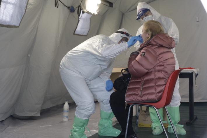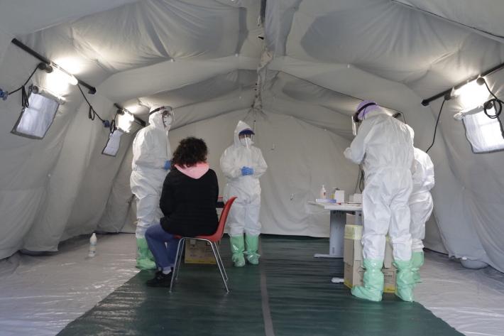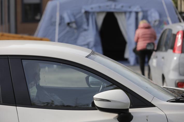 Nelle foto che vi mostriamo, una mattinata di tamponi nella tenda allestita di fronte al polo sociosanitario di via Vasari. E' qui che a mano a mano vengono convocate le persone che sono state a contatto con contagiati da Covid-19.