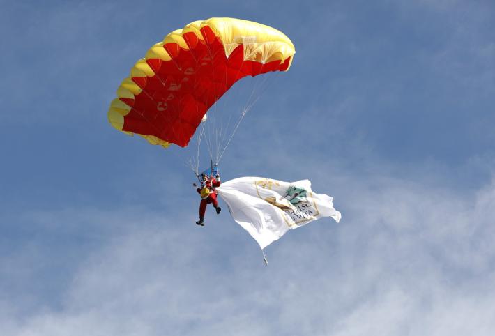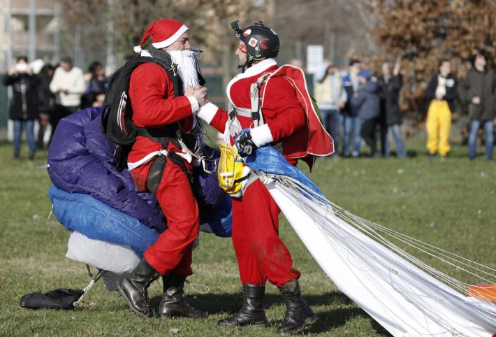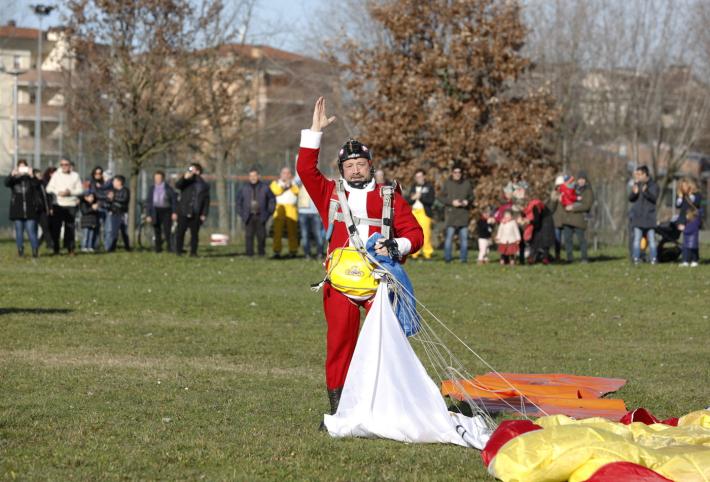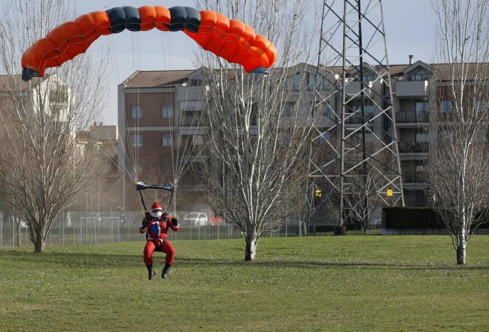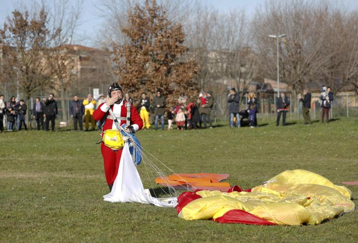 «Lanci dei Babbi Natale. Dolci e caramelle dal cielo per tutti». E grande festa per chi era questa mattina a naso all'insù in via Confalonieri. L’iniziativa è stata promossa dall’associazione «Dona un sorriso per la vita» in collaborazione con l’associazione nazionale paracadutisti d’Italia, il patrocinio del Comune e l’adesione del Corpo dei Vigili del Fuoco, Polizia di Stato e diverse associazioni.