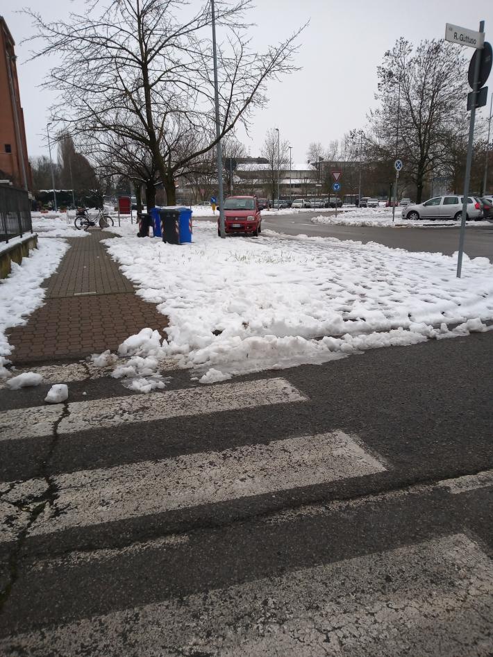 Sui marciapiedi ghiacciati i pedoni faticano a camminare anche grazie ai parcheggi selvaggi!