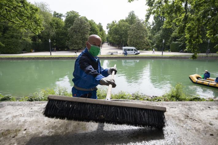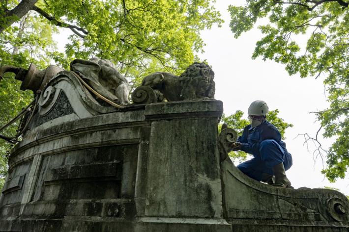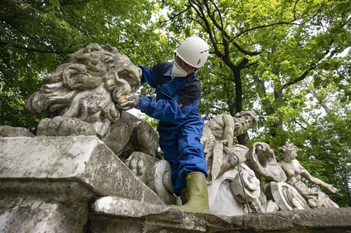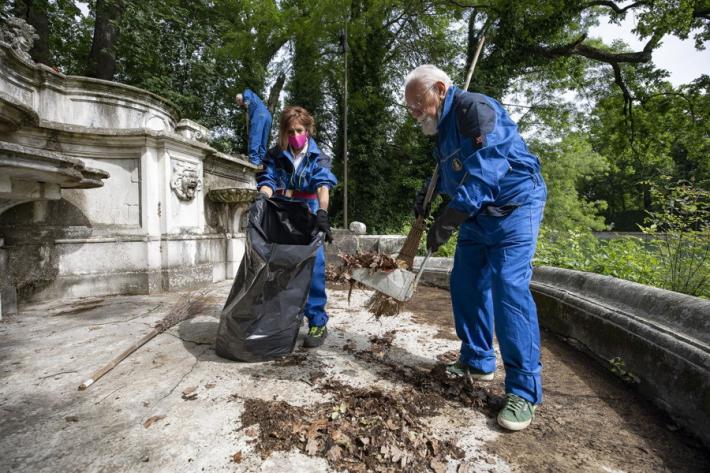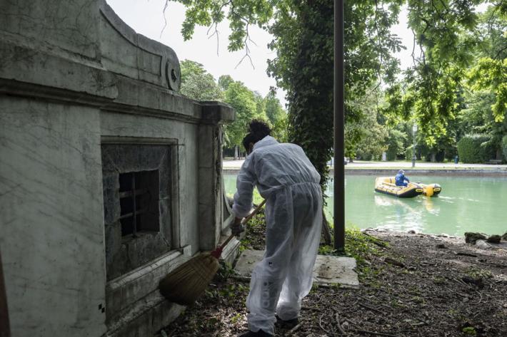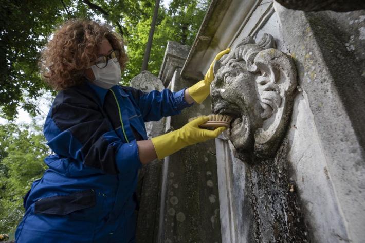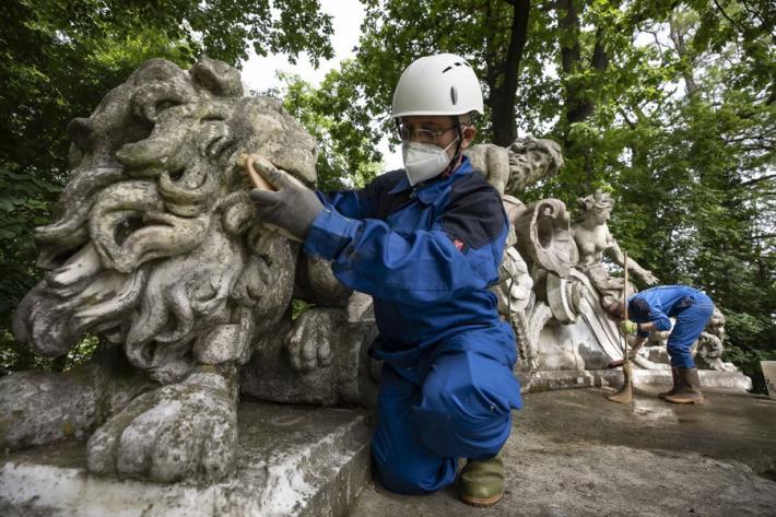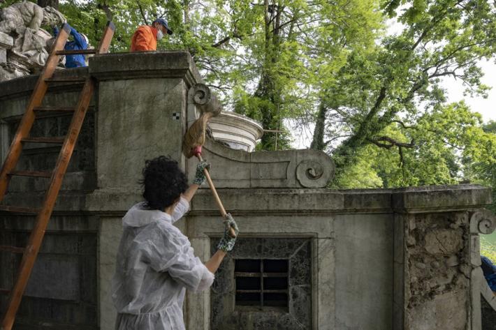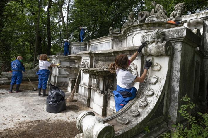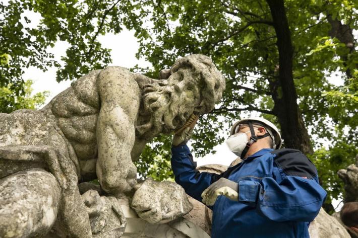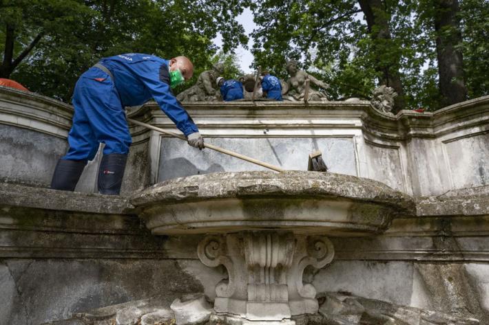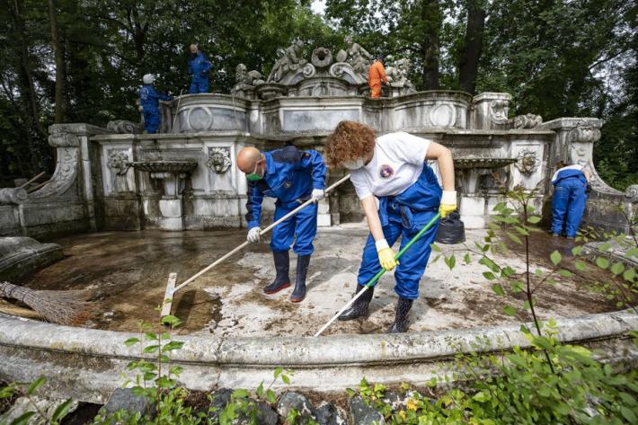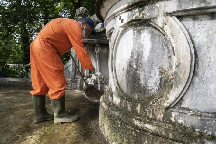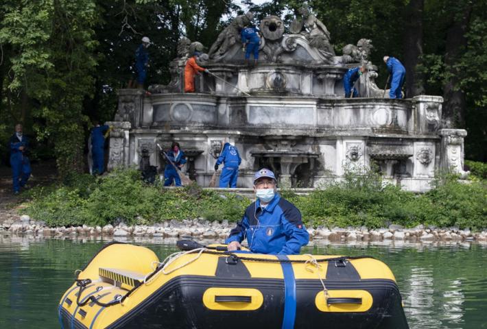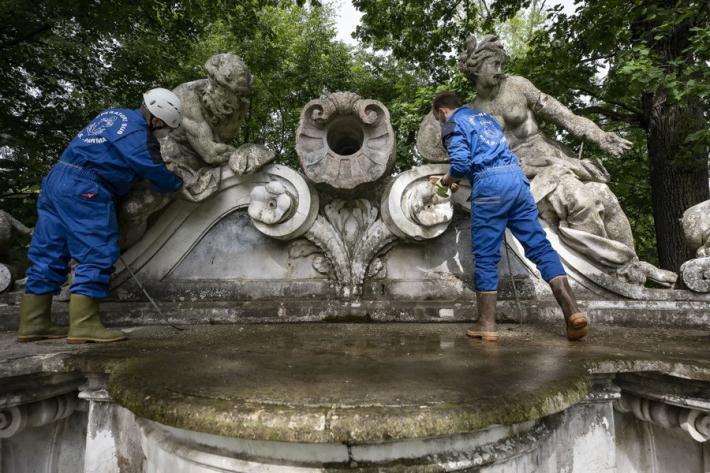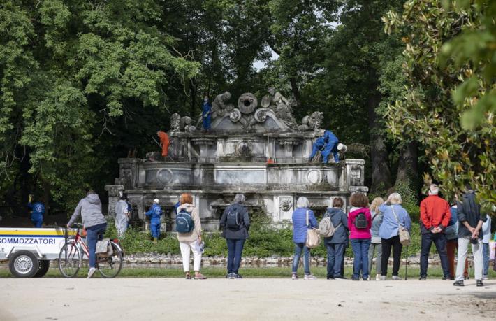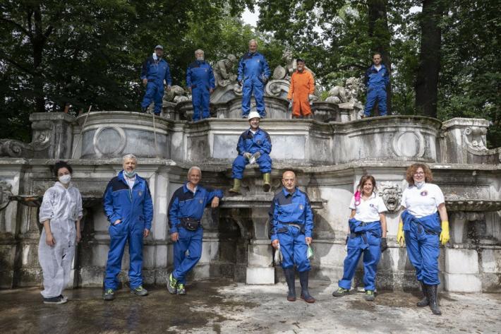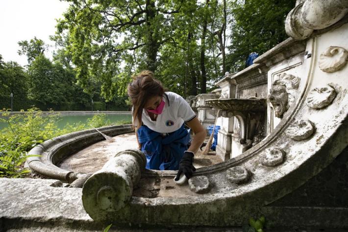 Ecco le foto della pulizia della Fontana del Trianon al Parco Ducale. (Foto di Annarita Melegari)