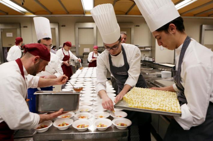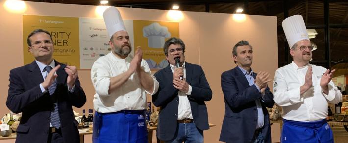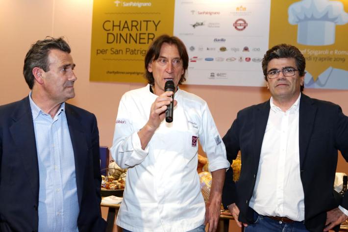 Pochi discorsi, poche parole, tanta commozione. «Quando penso a questi ragazzi mi si gonfia il cuore», sintetizza Spigaroli. Silvano Romani che ringrazia cuochi e ristoratori per l’entusiastico supporto, che si dice orgoglioso del cuore di Parma. Andrea Belli (del gruppo relazioni esterne della Barilla) che sottolinea come ancora una volta abbia vinto il gioco di squadra, che applaude «la nutrita rappresentanza delle aziende che aderiscono alla cabina di regia di Parma città creativa della gastronomia Unesco, che hanno fatto un’azione corale con i cuochi parmigiani e concertato questa cena benefica a favore di una comunità che è un fiore all’occhiello non solo per l’Emilia Romagna ma per tutto il Paese».