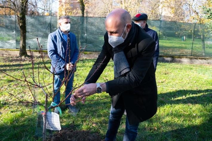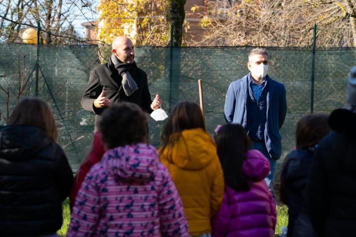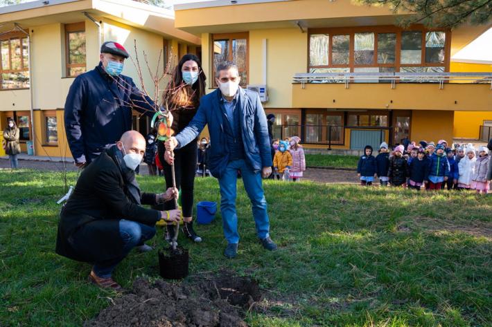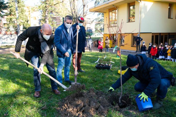 Si è svolta, questa mattina, nell’area verde della scuola dell’infanzia dell’Istituto Comprensivo Mario Lodi di Parma, la cerimonia di messa dimora di 16 nuovi alberi, nell’ambito del progetto della Regione Emilia Romagna, “Mettiamo radici per il futuro”, che prevede la fornitura di alberi gratuiti, anche per aree verdi scolastiche. L’iniziativa è nata dall’interessamento da Martina Mantovani, mamma di due bambine, Emma ed Eva, che frequentano la scuola, ed è stata accolta e condivisa con entusiasmo dal dirigente scolastico, Giovanni Ronchini, e dal corpo docente. Al momento hanno preso parte il Sindaco, Federico Pizzarotti e l’Assessore alle Politiche di pianificazione e sviluppo del territorio e delle opere pubbliche del Comune di Parma, Michele Alinovi.