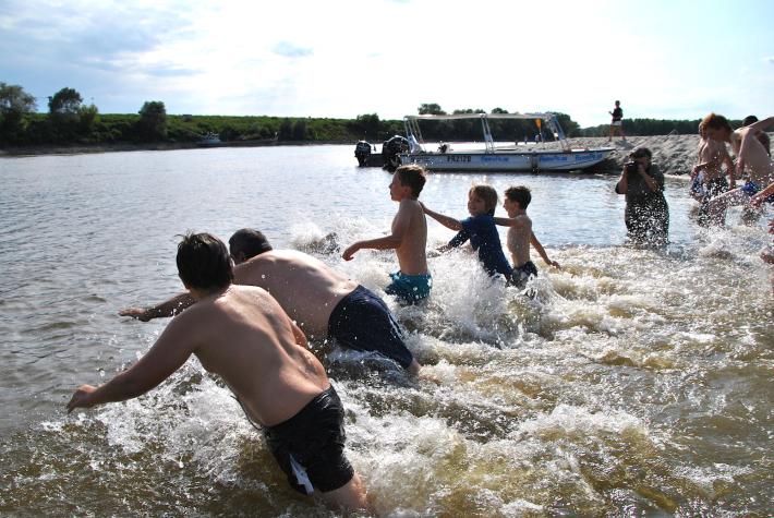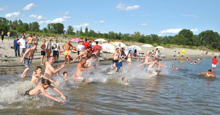 Gran successo del «Big jump», il tuffo nel fiume Po,  che si è svolto oggi dallo spiaggione di Coltaro e Torricella di Sissa Trecasali.