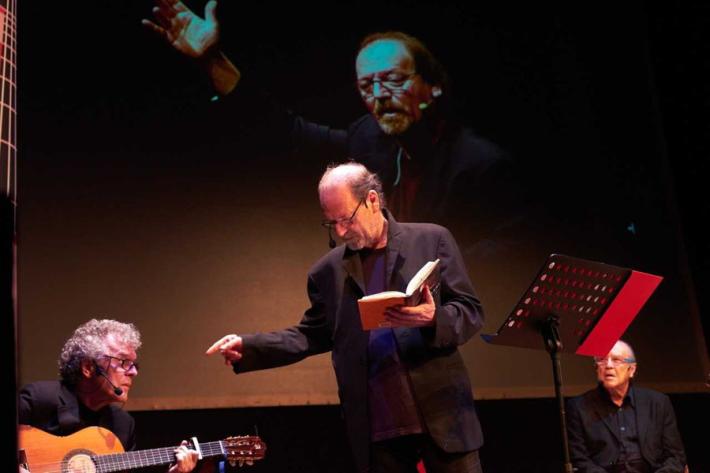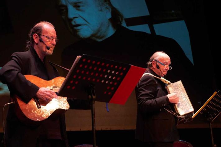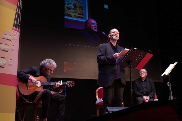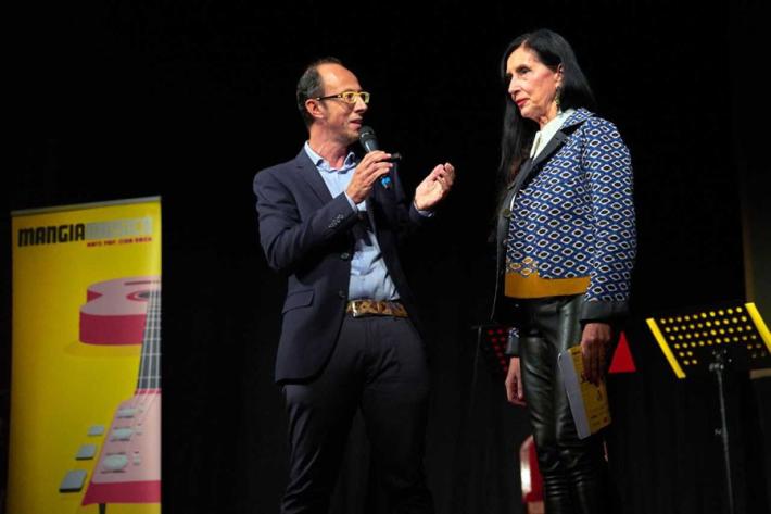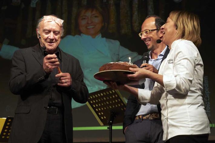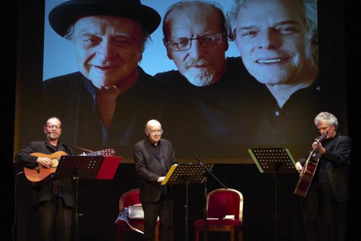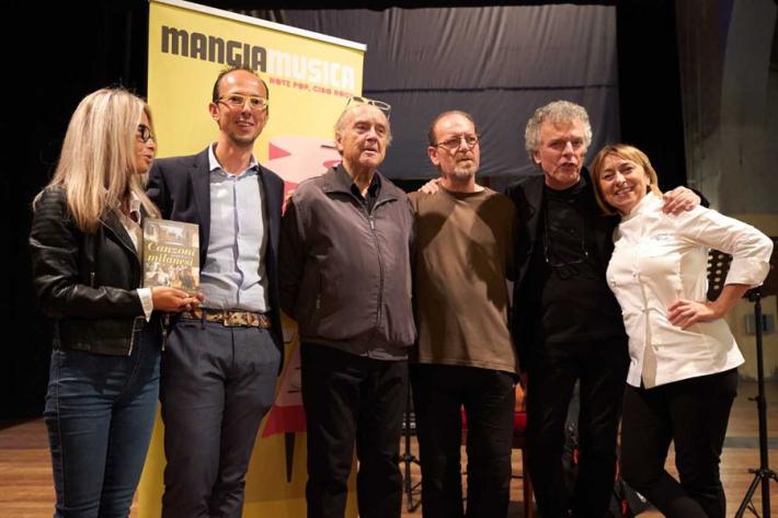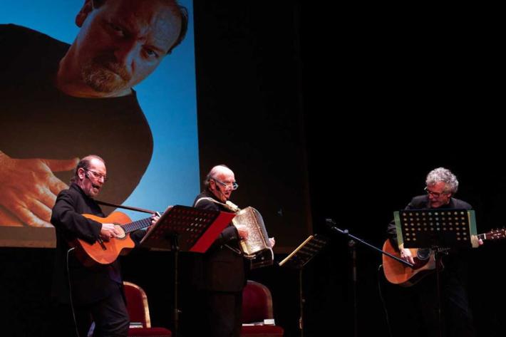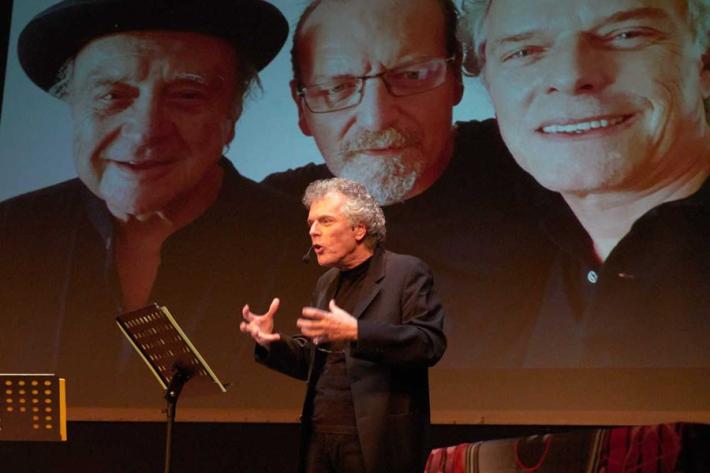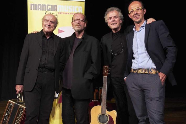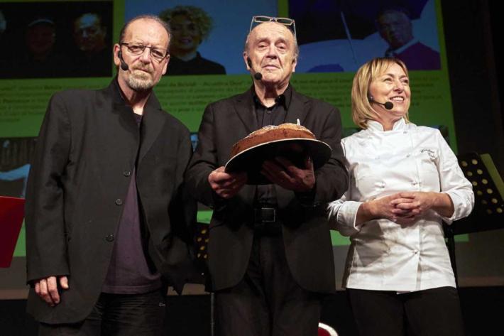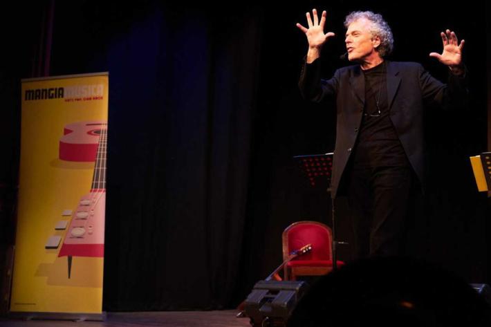 Sold out per il debutto di Mangiamusica 2019 al Teatro Magnani di Fidenza con lo spettacolo “Invenzioni a tre voci”, con Roberto Brivio (che ha festeggiato 60 anni di carriera), Flavio Oreglio e Alberto Patrucco. E con lo show cooking (bisulan con crema di zabaione) di Cristina Cerbi, chef dell’Osteria di Fornio. Direzione artistica: Gianluigi Negri. Foto di Fabrizio Bertolini