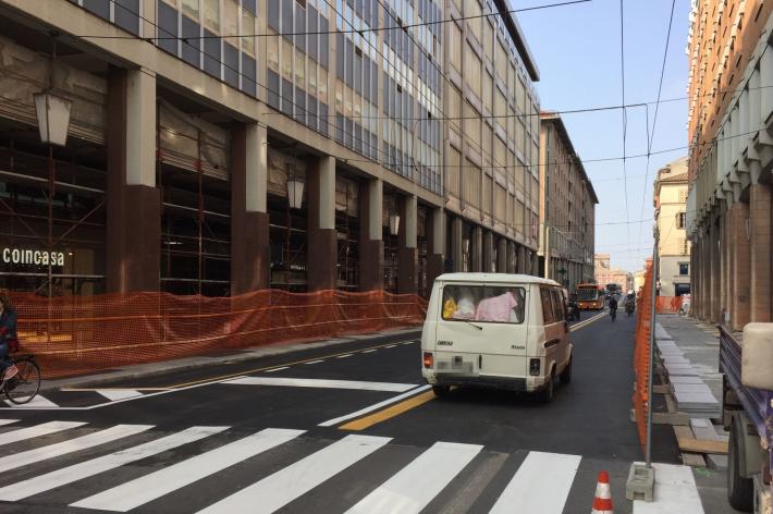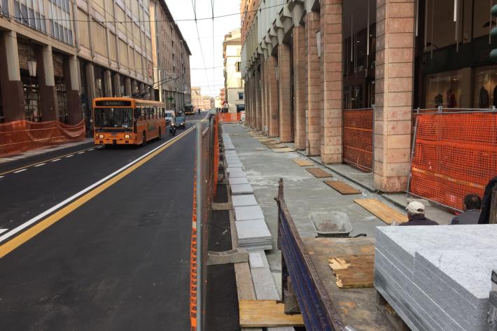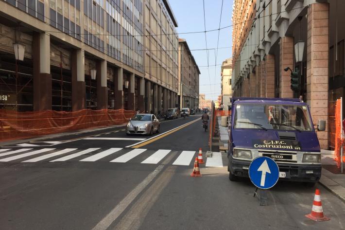 Buona notizia per il traffico nel cuore della città. lavori in via Mazzini, continua il cantiere ai lati della strada, al centro però è ritornato il doppio senso di marcia.