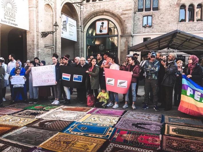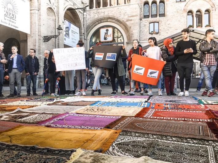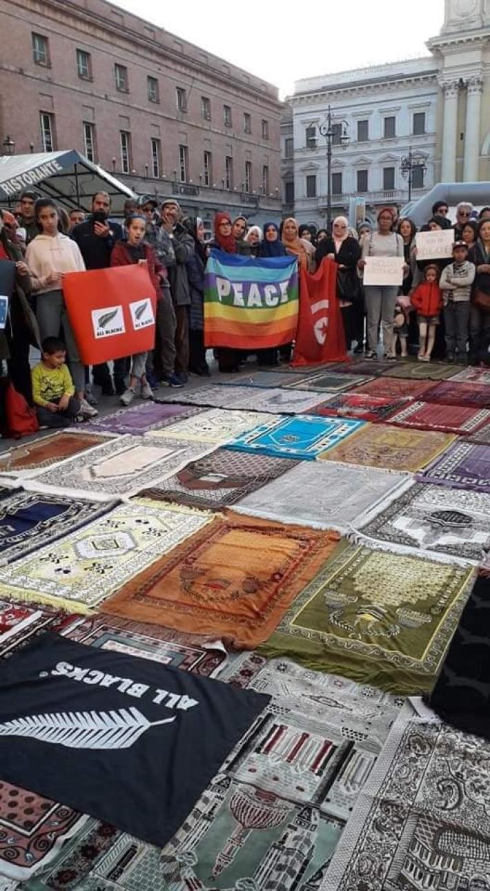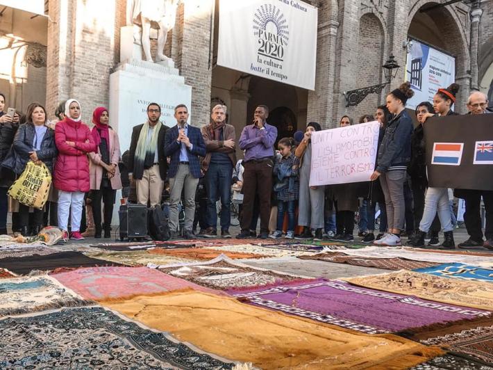 Ieri in piazza Garibaldi la manifestazione promossa dalla comunità islamica di Parma e da alcune associazioni straniere e multiculturali per ricordare le vittime delle stragi in Nuova Zelanda e Olanda e in generale del terrorismo. 51 tappeti da preghiera per ricordare simbolicamente i 51 morti nell'attentato alle due moschee. Era presente anche il sindaco Federico Pizzarotti .