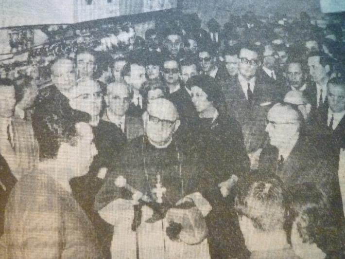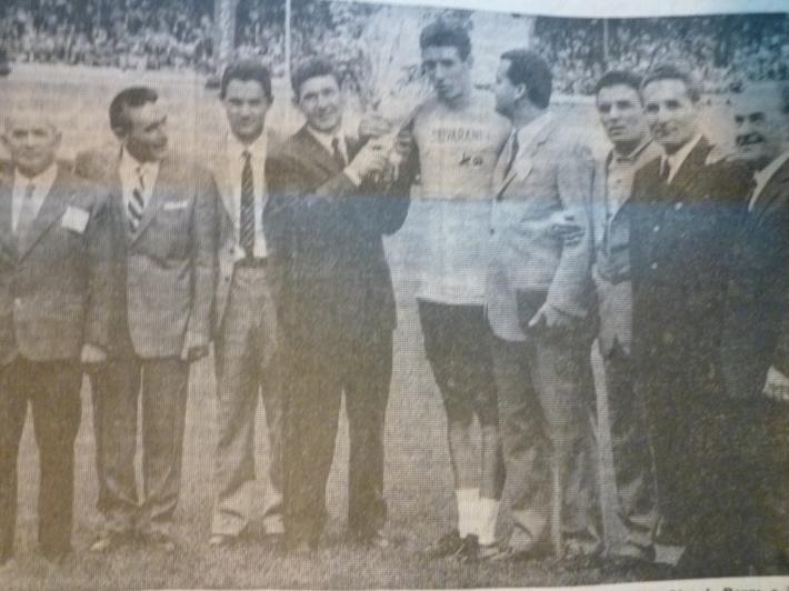 1966 - Grande folla all'inaugurazione della nuova Upim in via Mazzini - La Salvarani fiore all'occhiello dell'industria e dello sport (nella foto i fratelli Salvarani con Felice Gimondi vincitore del Tour de FRance 1965)