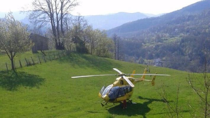 Foto del Corpo Nazionale Soccorso Alpino e Speleologico, intervenuto a Filagni di Valmozzola per soccorrere un agricoltore ferito dopo che il suo trattore si è ribaltato in un bosco.